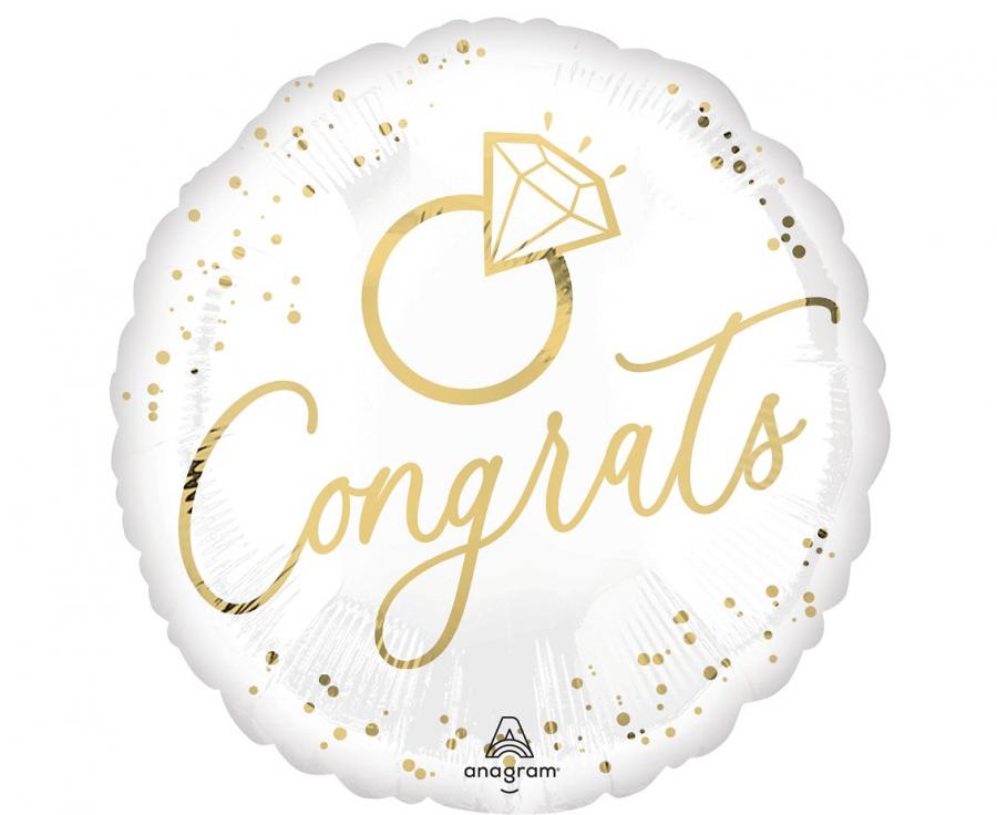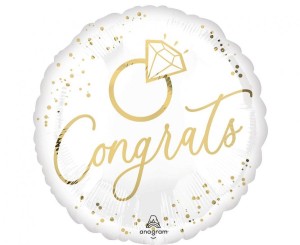 Balon foliowy w kolorze białym z napisem ''Congrats'', wymiary po napompowaniu ok. 36 cm (14'').