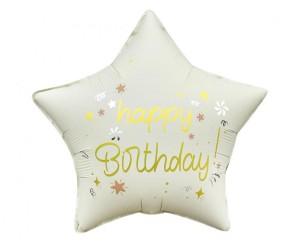 Balon foliowy Happy Birthday, gwiazda matowa biała 18"