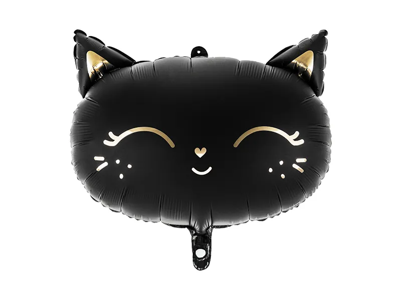 Matowy balon foliowy Kotek w czarnym kolorze ze złotymi metalizowanymi elementami, wymiary ok. 48 x 36 cm (19 x 14'').