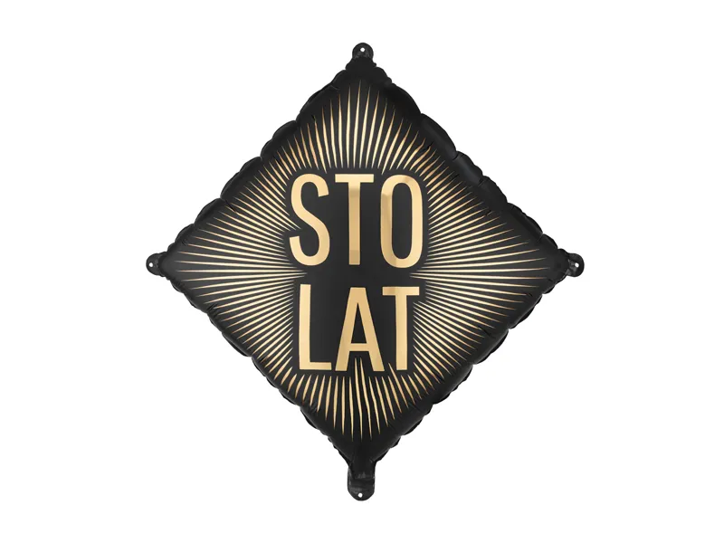 Balon foliowy w kolorze czarnym ze złotym napisem ''Sto lat''. Wymiary przed napompowaniem ok. 54 x 54 cm (20 x 20''), wymiary po napompowaniu ok. 46 x 46 cm (18 x 18''). Do napompowania powietrzem i helem.