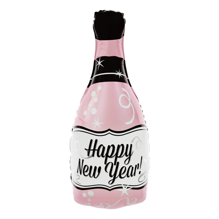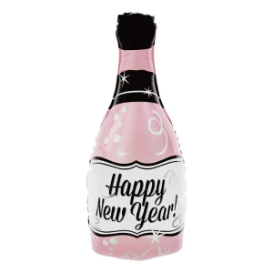 Balon foliowy Butelka Happy New Year, mix kolorów, wymiary ok. 100 x 49 cm. Do napompowania powietrzem i helem.