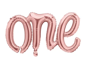 Balon foliowy napis One, 66x37cm, różowe złoto