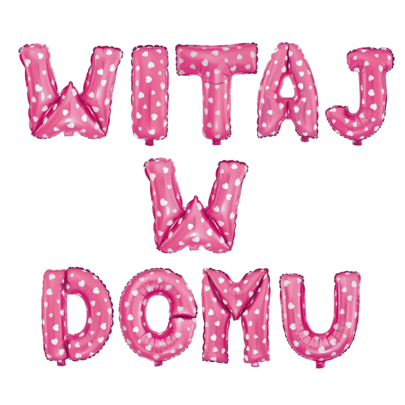 Balon foliowy napis WITAJ W DOMU różowy w serca