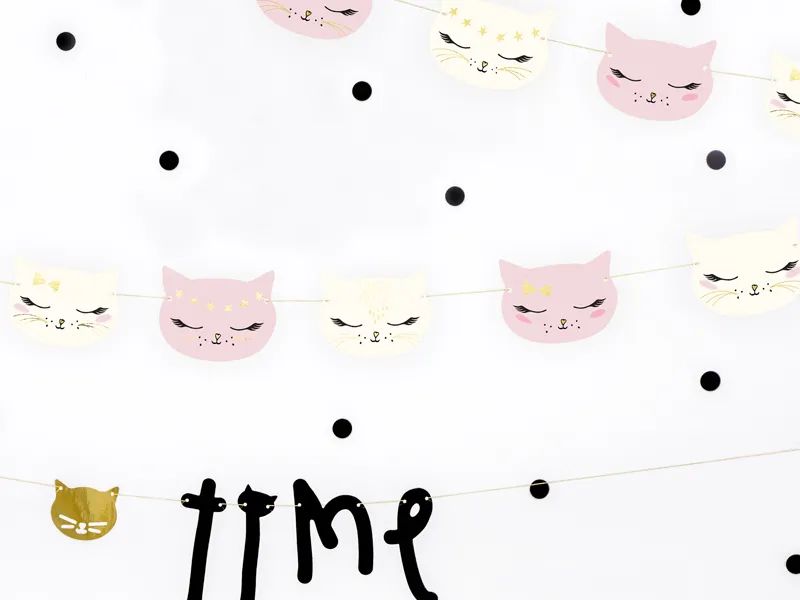 Girlanda Kotek, mix wzorów i kolorów, do samodzielnego złożenia, zestaw zawiera 8 kotków i ok. 3 m złotego sznurka, wymiary po złożeniu: wysokość ok. 8,5 cm, długość ok. 1,4 m.