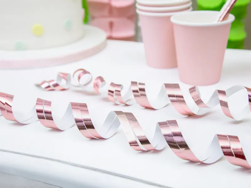 Serpentyny w kolorze różowego złota, długość ok. 3,8 m.