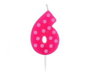 Świeczka cyferka piker Grochy - 6, 6 cm