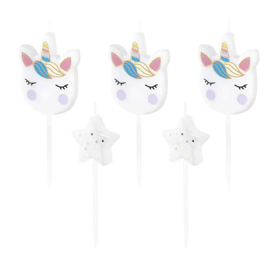Świeczki urodzinowe z jednorożcami oraz gwiazdkami, 5szt w 1 op.