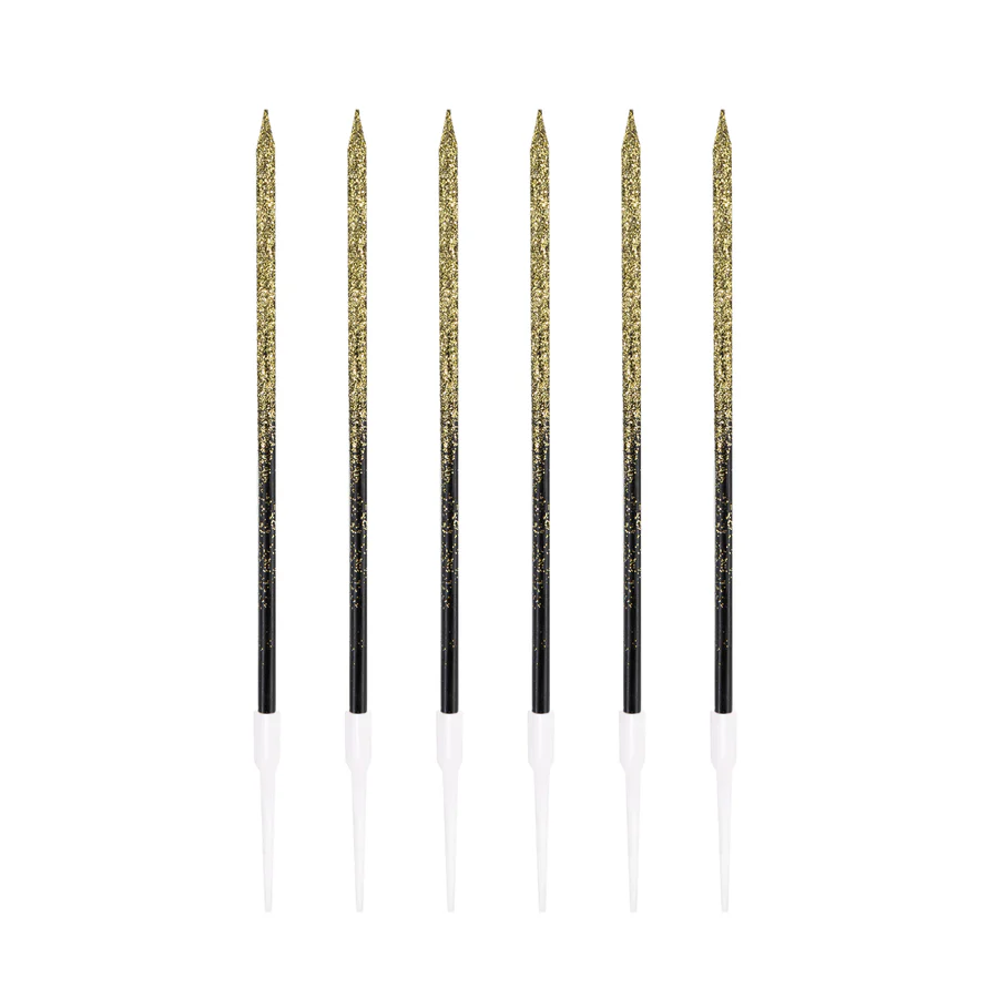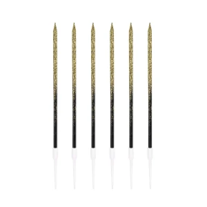 Świeczki urodzinowe czarno-złote z brokatem 6szt.