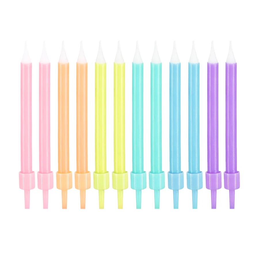 Świeczki urodzinowe różnokolorowe, rozmiar ok. 6 cm, 12 szt w opakowaniu.