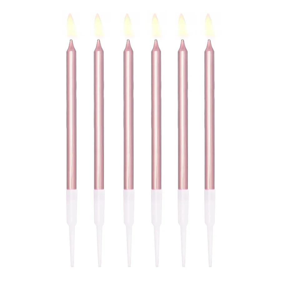 Świeczki urodzinowe w kolorze różowe złoto, rozmiar ok. 13 cm, 6 szt w opakowaniu.