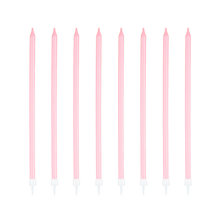 Świeczki urodzinowe w kolorze różowym, rozmiar ok. 15 cm, 8 szt w opakowaniu.