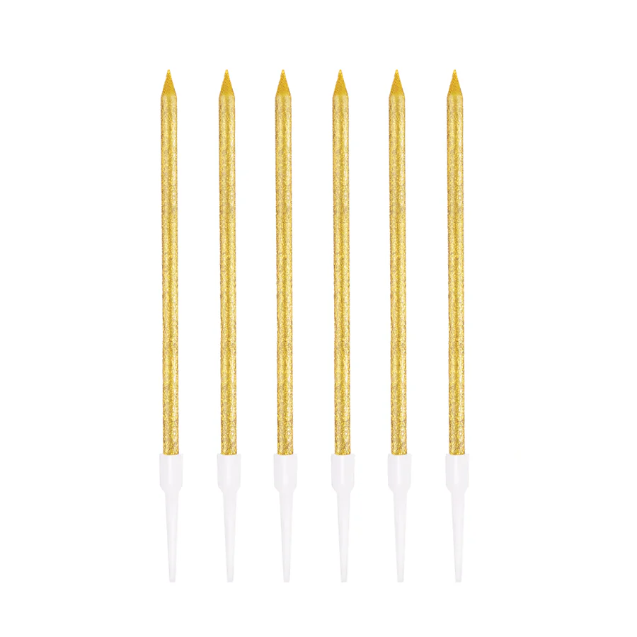 Świeczki urodzinowe złote z brokatem 6szt.