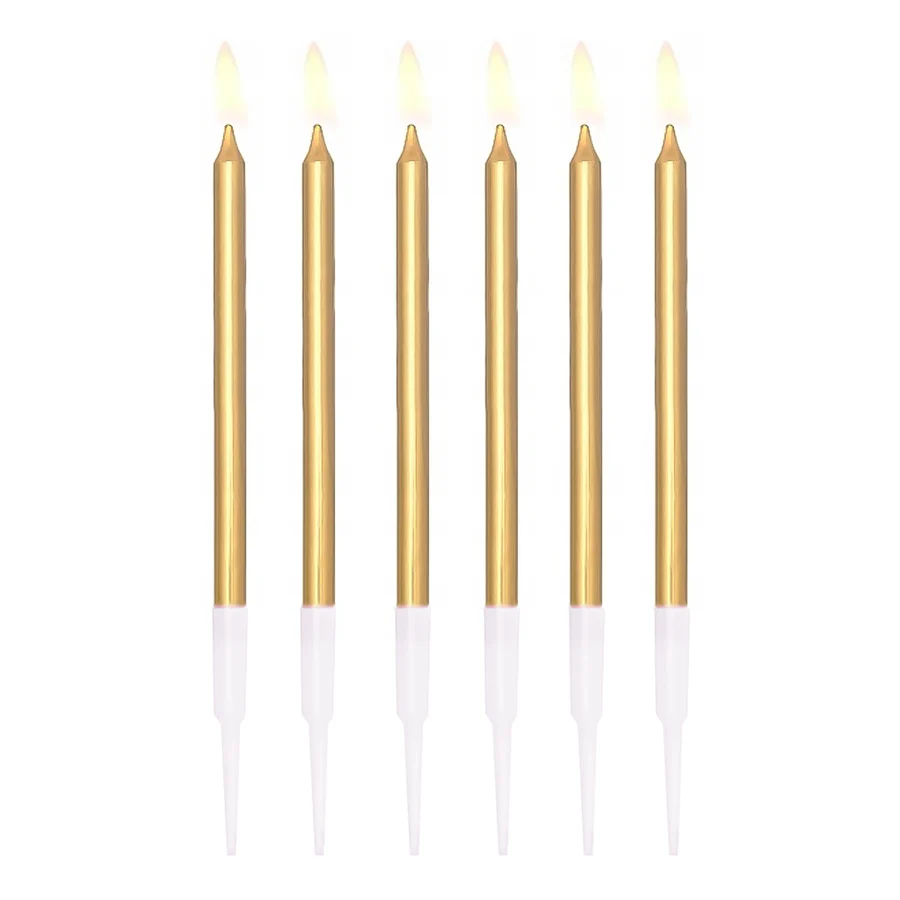 Świeczki urodzinowe w kolorze złotym, rozmiar ok. 13 cm, 6 szt w opakowaniu.