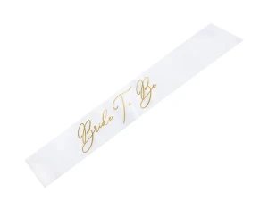 Szarfa satynowa Bride to be w kolorze białym, szerokość ok. 10 cm, długość ok. 75 cm.