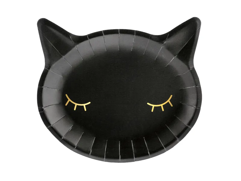 Talerzyki papierowe Kotek w kolorze czarnym ze złotym nadrukiem, wymiary ok. 22 x 20 cm.